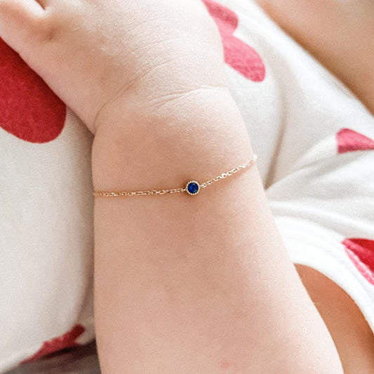 18K Gold Blue Sapphire Baby and Mom Bracelet Set